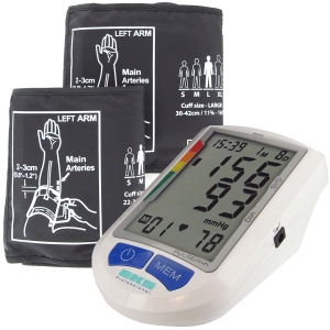 Livré avec brassard Adulte (22 à 42 cm) piles, carte de la pression artérielle et une trousse de rangement.